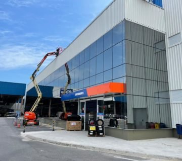 REVITALIZAÇÃO DA FACHADA DO SENAI CIMATEC, TROCA DE VIDRO DANIFICADOS ROYAL BLUE E REPAROS ESTRUTIRAIS, SEGURANÇA, BELEZA E CONFORTO PARA TODOS OS FREQUENTADORES. RELAIZADA NA CIDADE DE SALVADOR, ESTADO DA BAHIA.